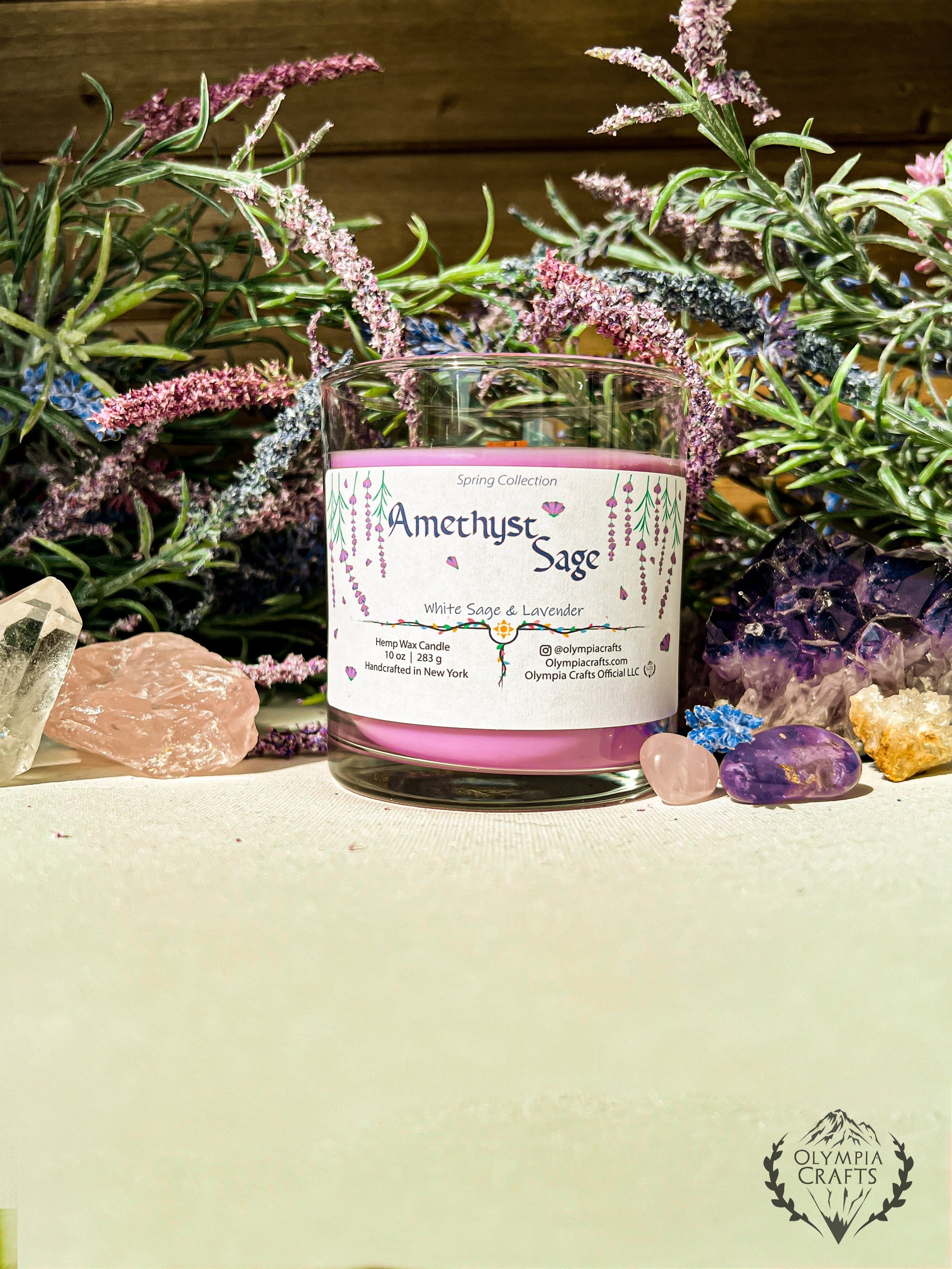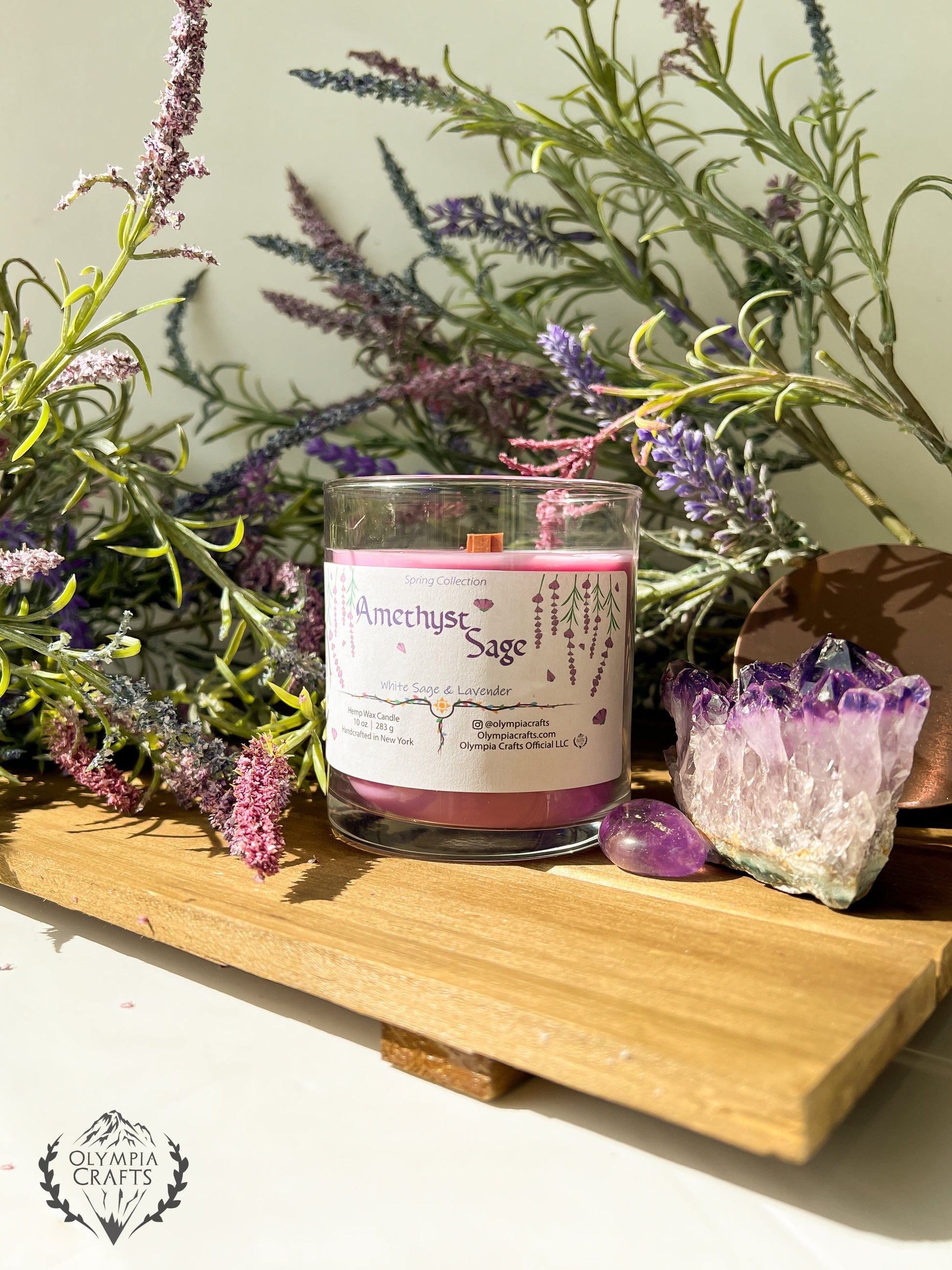 Amethyst Sage | Spring Collection | White Sage & Lavender | Lavender Flowers | Vegan Soy Candles