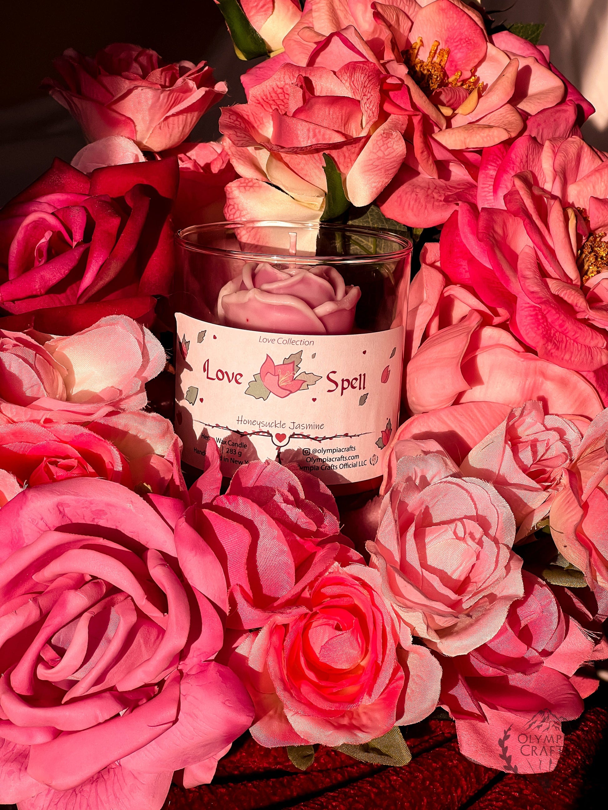 Love SpellĀ | Love Collection | Honeysuckle Jasmine | Rose Mold | Vegan Hemp CandlesĀ
