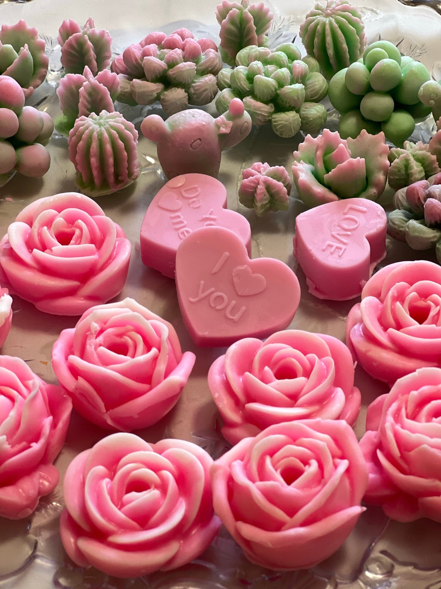 Put these on a wax burner and watch the design swirl releasing divine scents and biodegradable glitter. You can also put them in the candle again!!